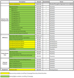 We are on track to use the funds that are raised to expand the multi-use recreational facility.